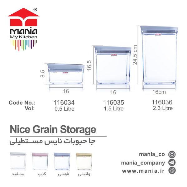 جاحبوباتی مانیا مدل نایس، سایز 2، با ترکیبی از طراحی زیبا، کارایی بالا و ایمنی کامل، انتخابی هوشمندانه برای سازماندهی و نگهداری مواد غذایی شماست. همین حالا سفارش دهید و از مزایای این محصول بینظیر بهرهمند شوید.