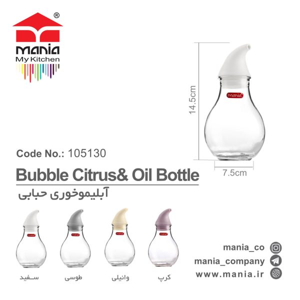 از طعم لذیذ آبلیمو و یا روغن های خوشمزه خود لذت ببرید با بطری آبلیموخوری حبابی مانیا، با گنجایش 250 میلیلیتر (نیم لیتر). این بطری با طراحی شیک و کاربردی، انتخابی ایدهآل برای آشپزخانه و سفر شماست.