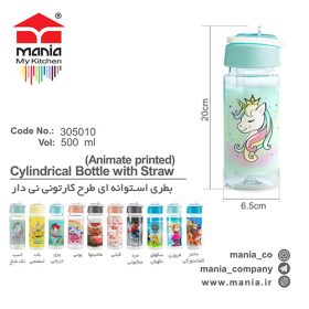 بطری آب کودکانه طرح کارتونی با نی – 430 میلی لیتر