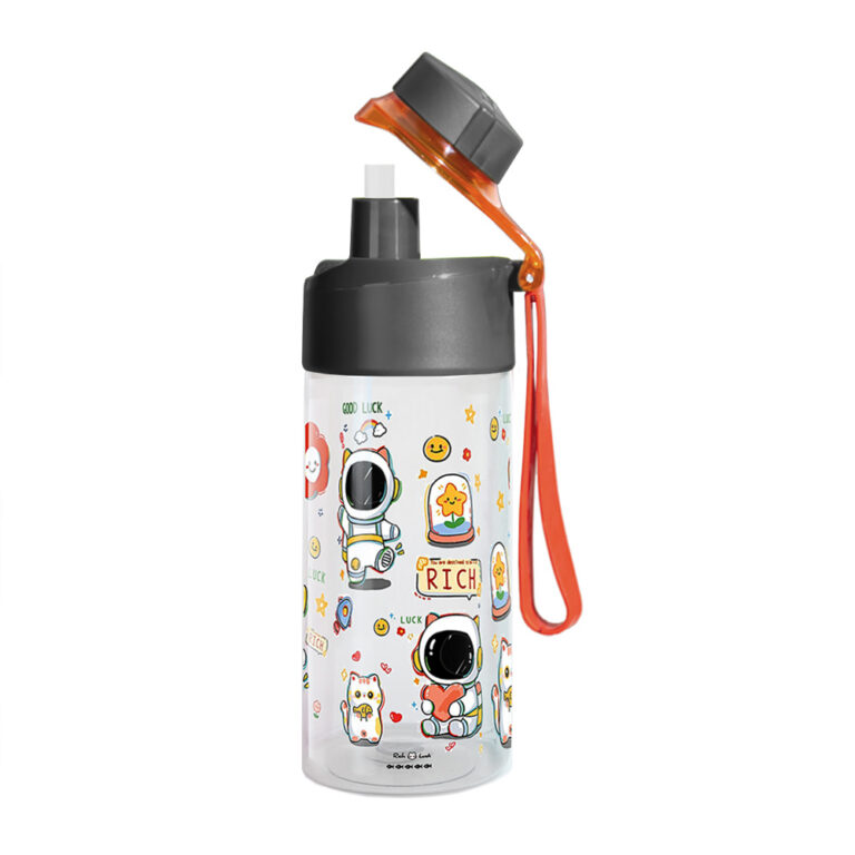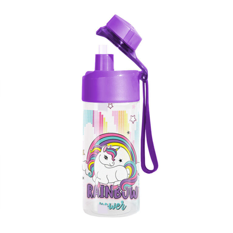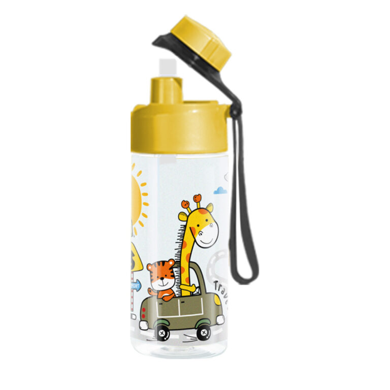 این بطری با طراحی کارتونی جذاب و گنجایش مناسب 430 میلی لیتر، نوشیدنی شما را در طول روز تازه و با طراوت نگه می دارد. با وزن سبک 125 گرم و ابعاد 19.5×6.5×6.5 سانتیمتر، به راحتی قابل حمل بوده و برای مدرسه، محل کار، ورزش و یا هر فعالیت دیگری مناسب است.