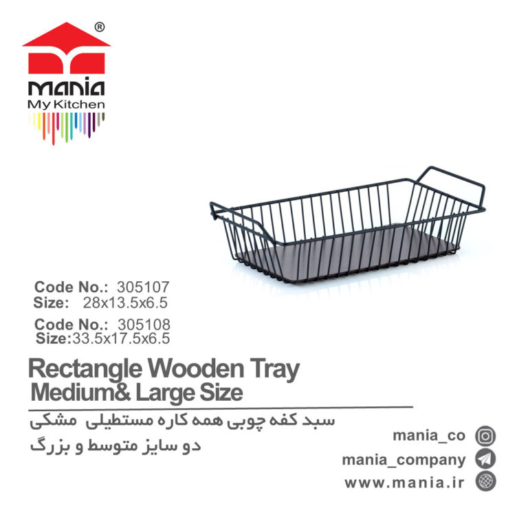 سبد کفه چوبی مستطیل بزرگ مشکی – مناسب برای همه کارهها
