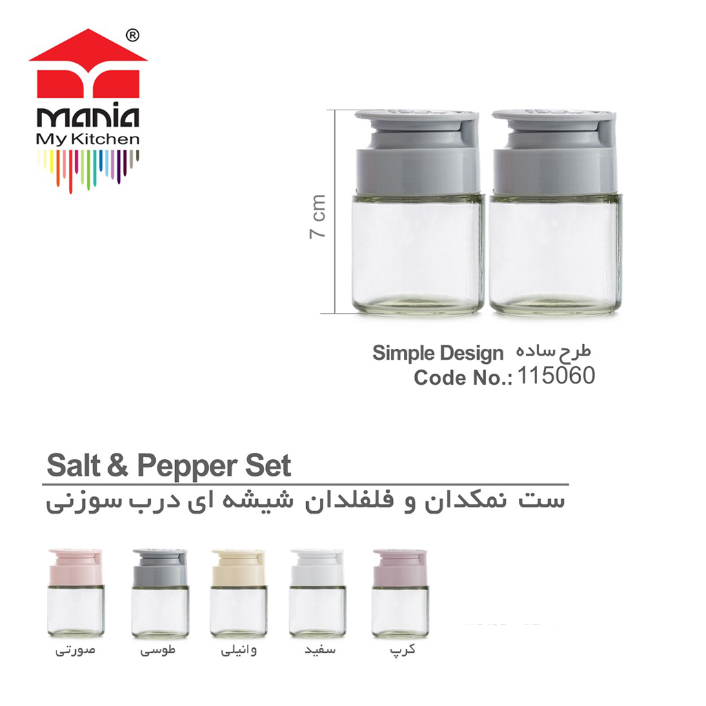درب: درب فشاری با سوراخ‌های سوزنی برای کنترل دقیق ریزش نمک و فلفل