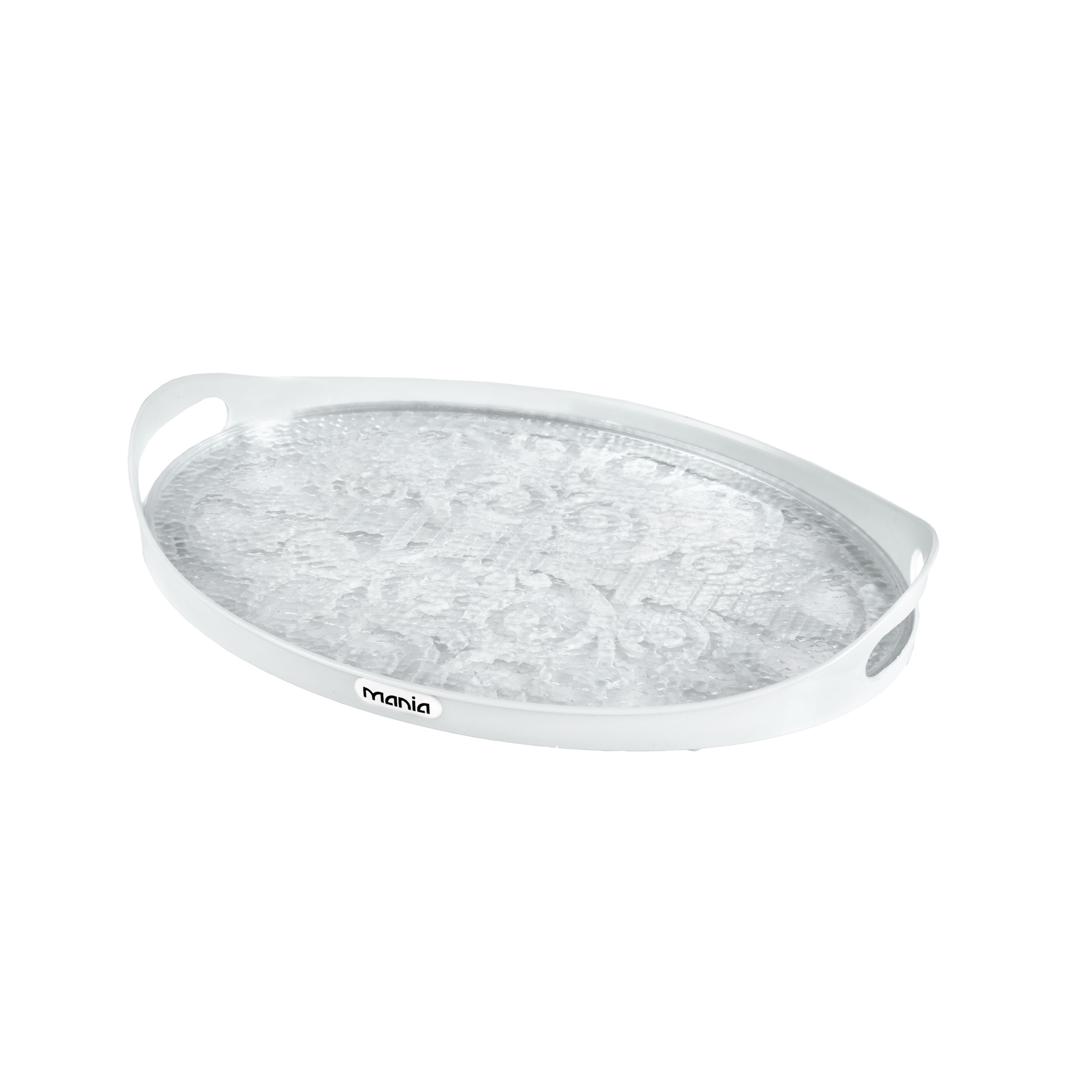 صفحه شفاف با بافت برفکی: زیبایی و ظرافت این سینی را دوچندان میکند.