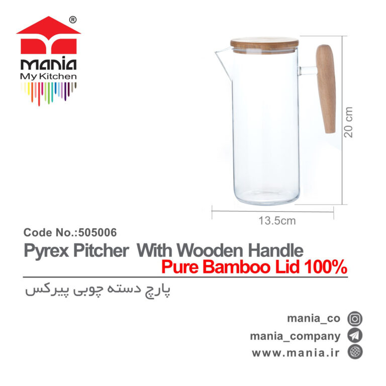 پارچ پیرکس 1.2 لیتری با دسته چوبی – مدل 505006